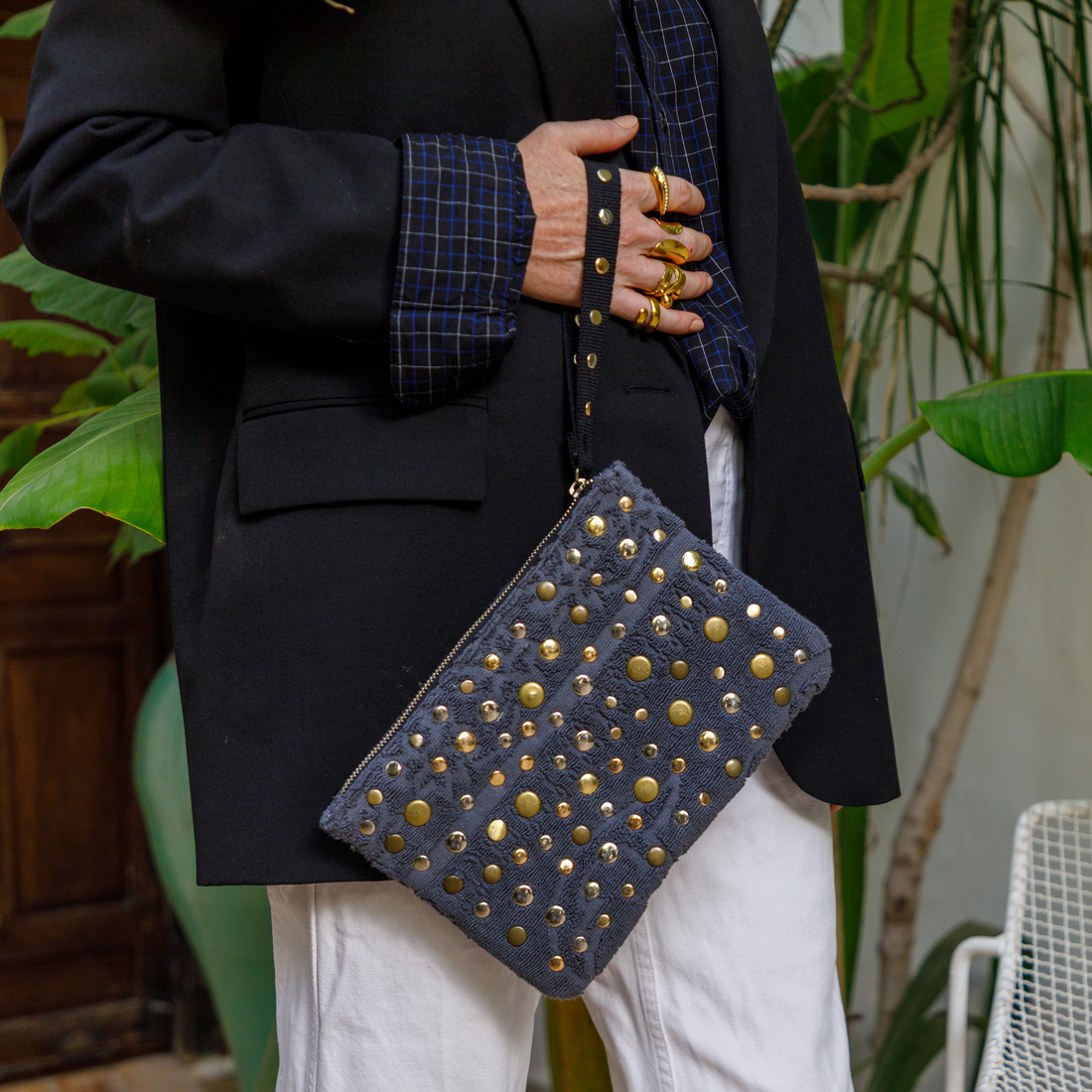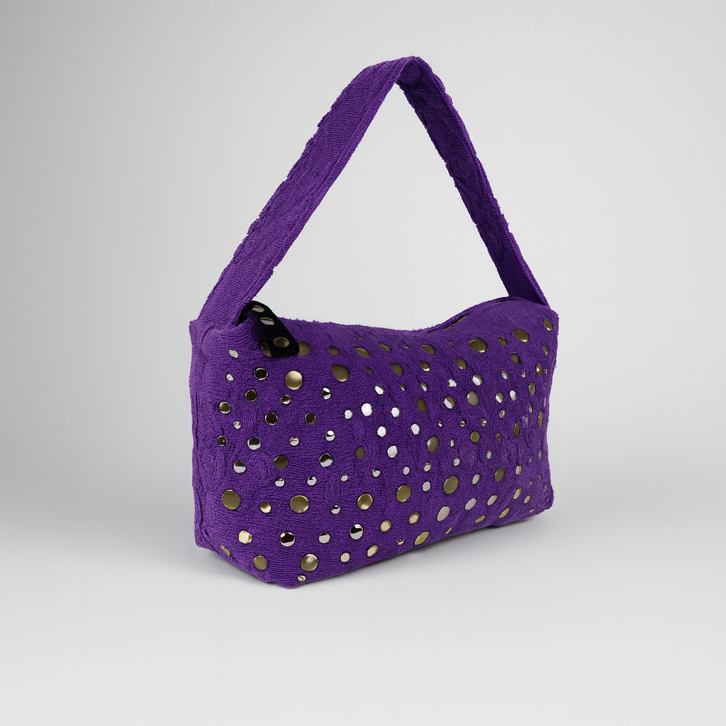 Thé essential to complete your outfit: the studded shoulder bag MOON. ☾ In Lalla's laid-back...