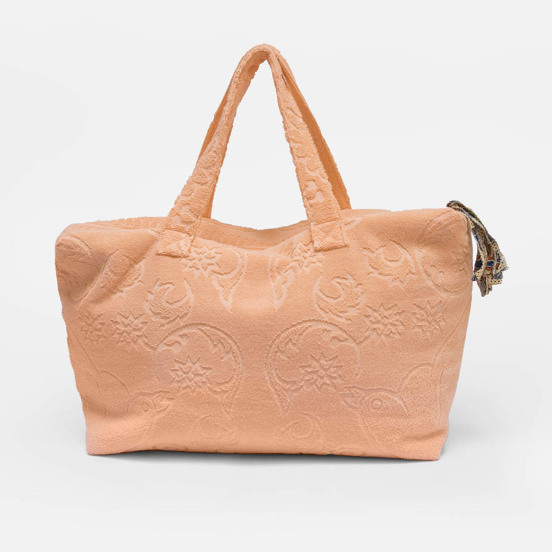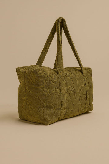 Large terry beach-slash-travel bag with fringes: HIPPY SOCCO! Dimensions: L 54cm x H 33cm x...