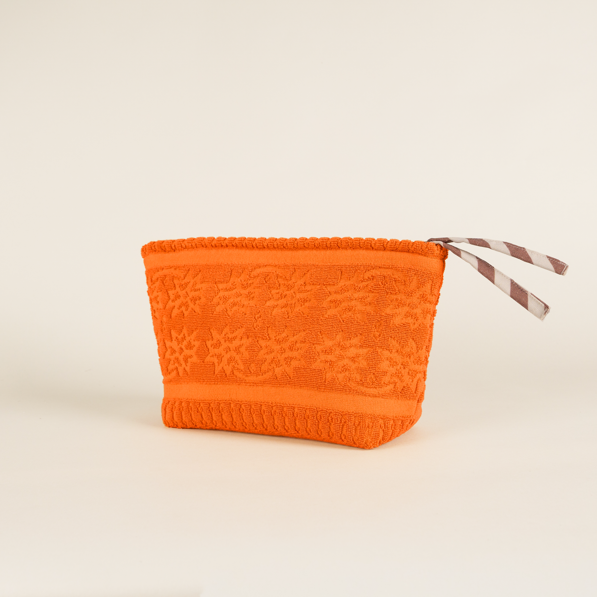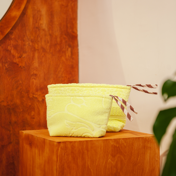 LAVAGE : Lavable en machine à 30 °C maximum, programme normal, ou à la main. Ne pas utiliser d’eau de Javel. Sécher à l’air libre ou au sèche-linge à basse température. CONSEILS POUR LES FILS DÉTACHÉS : Des fils peuvent apparaître suite à un contact avec un objet pointu. Pas d’inquiétude, ils s’enlèvent facilement aux ciseaux. Votre tissu retrouvera alors son aspect neuf ! PLIS VISIBLES : Nous vous conseillons de poser votre article en tissu éponge sur une étagère ou de le suspendre (s’il possède des poignées). Si des plis se forment malgré tout, cessez de le plier et défroissez-les à la vapeur (à environ 15 cm de distance).