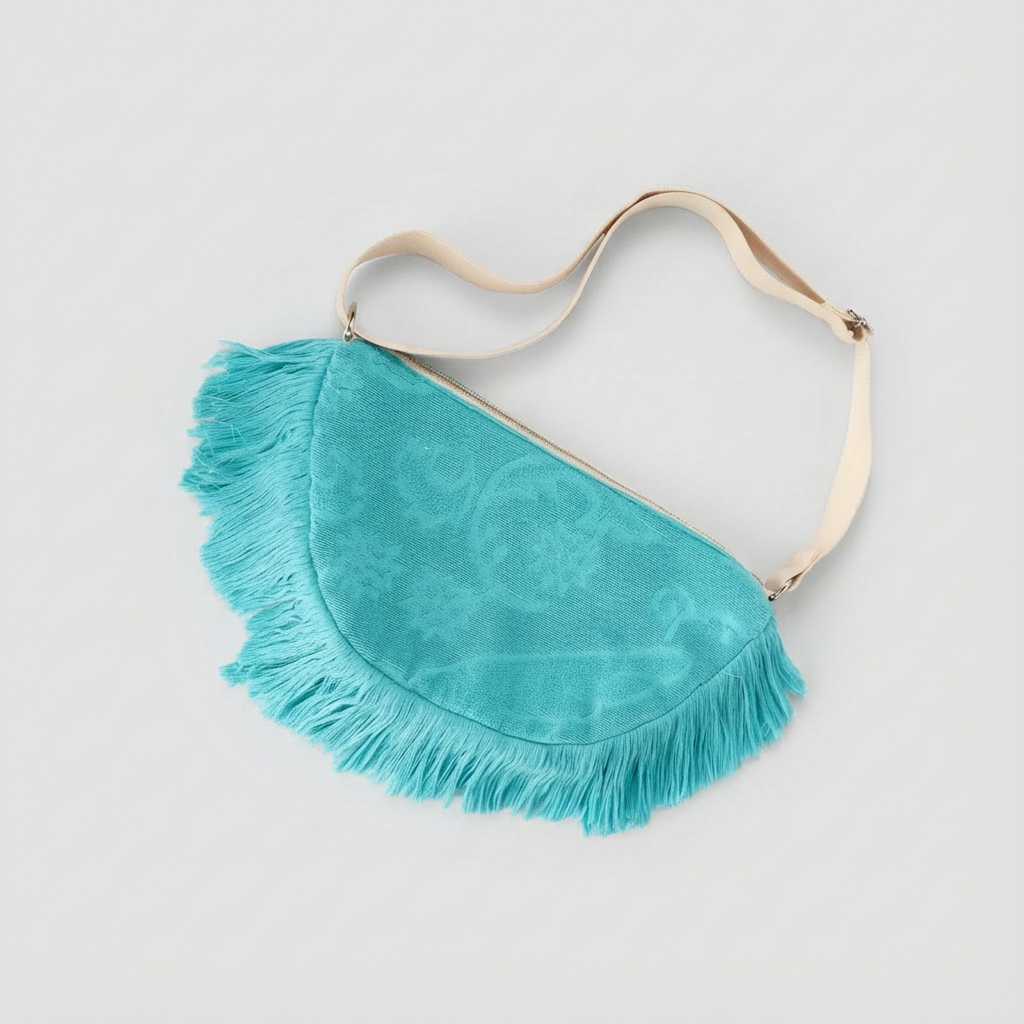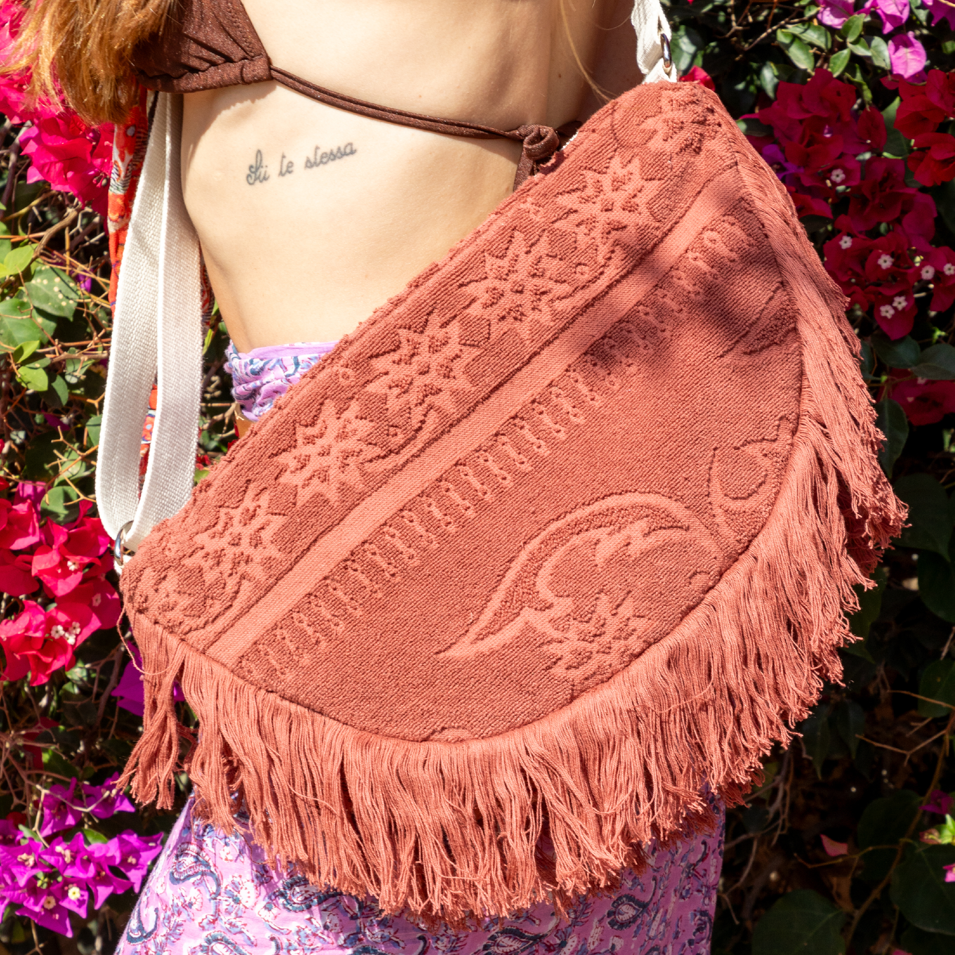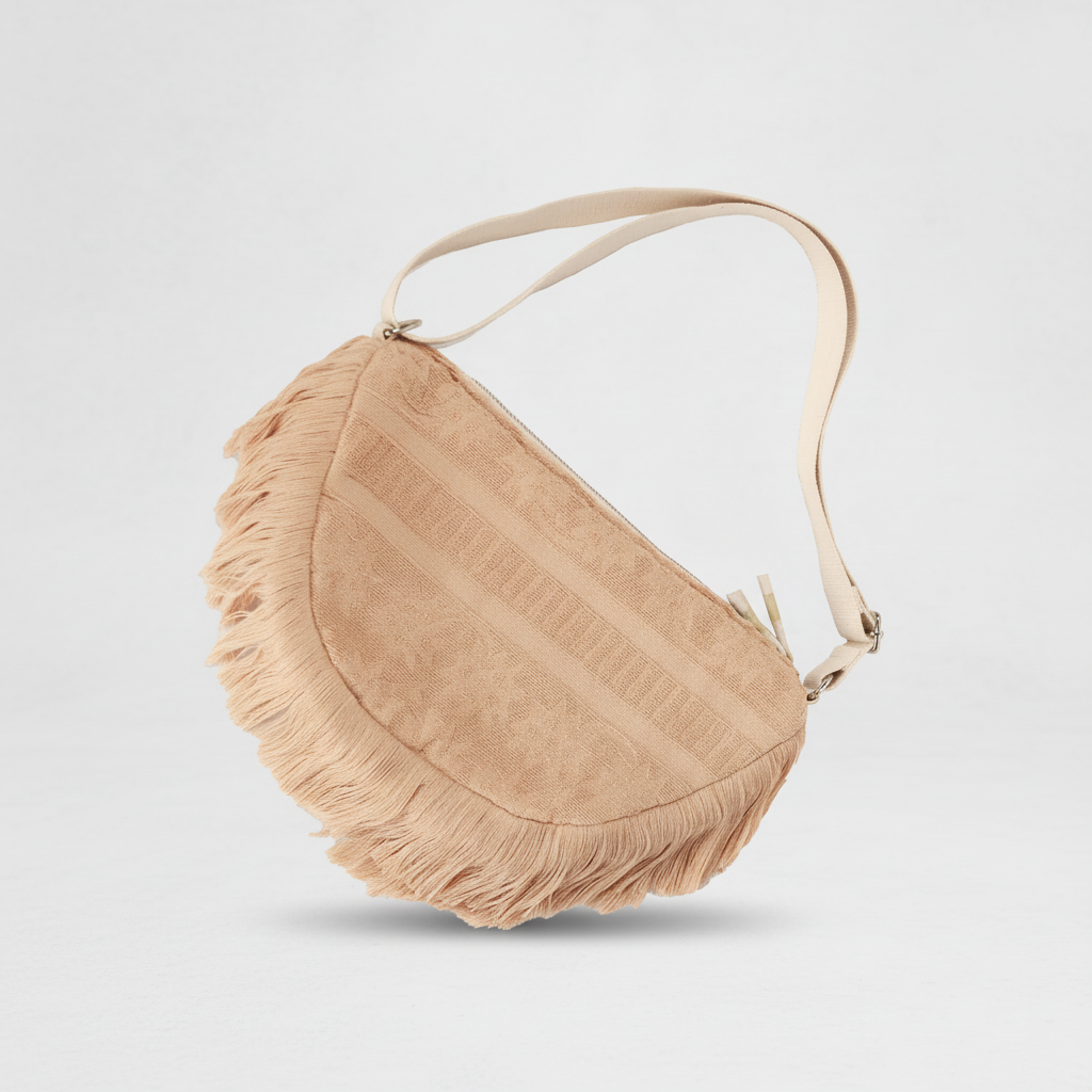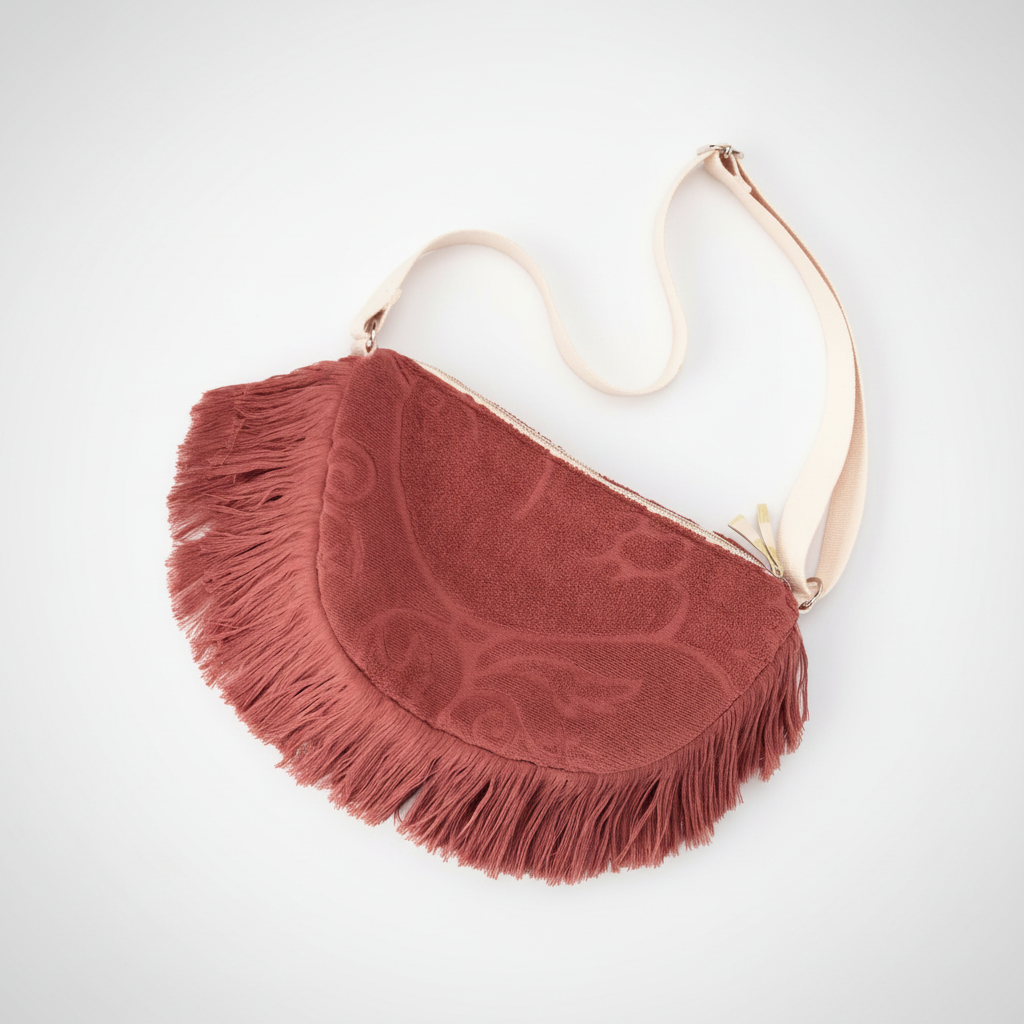 The half moon chic banana bag ANGLET with adjustable cotton strap, extra funky with fringes!