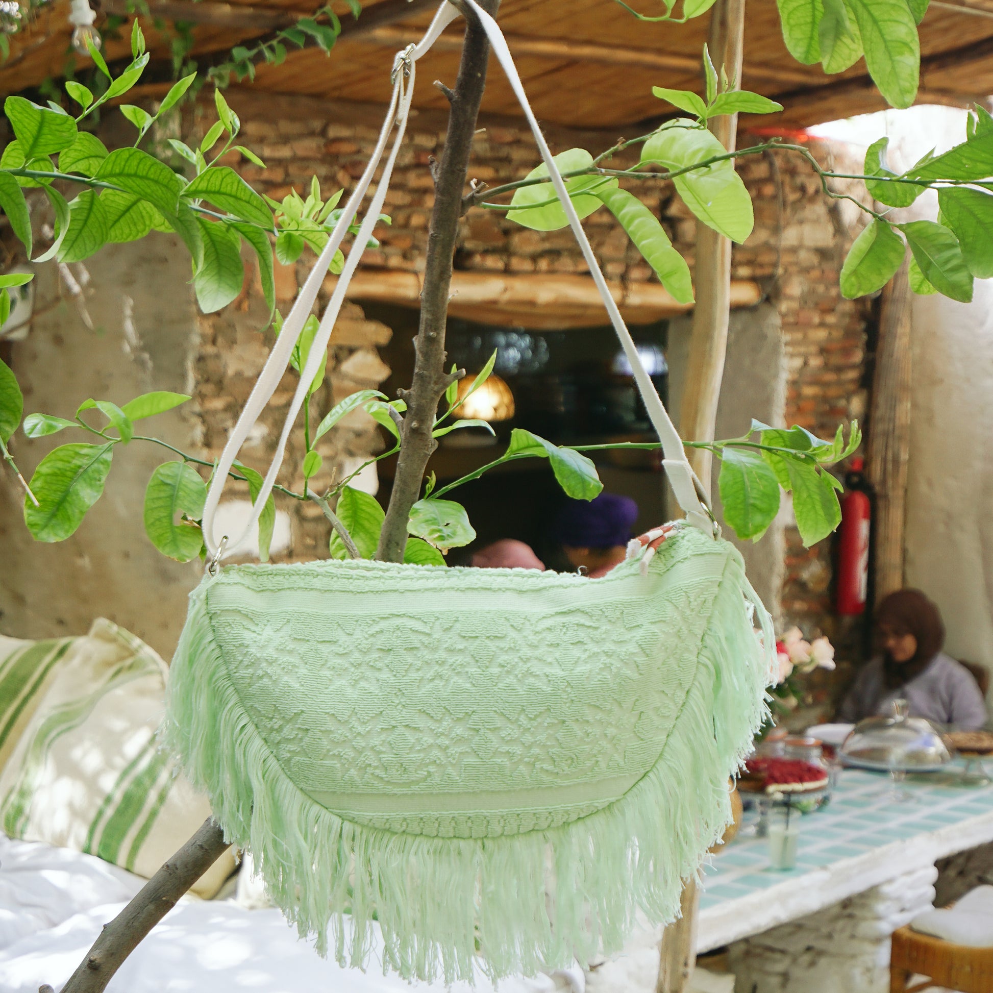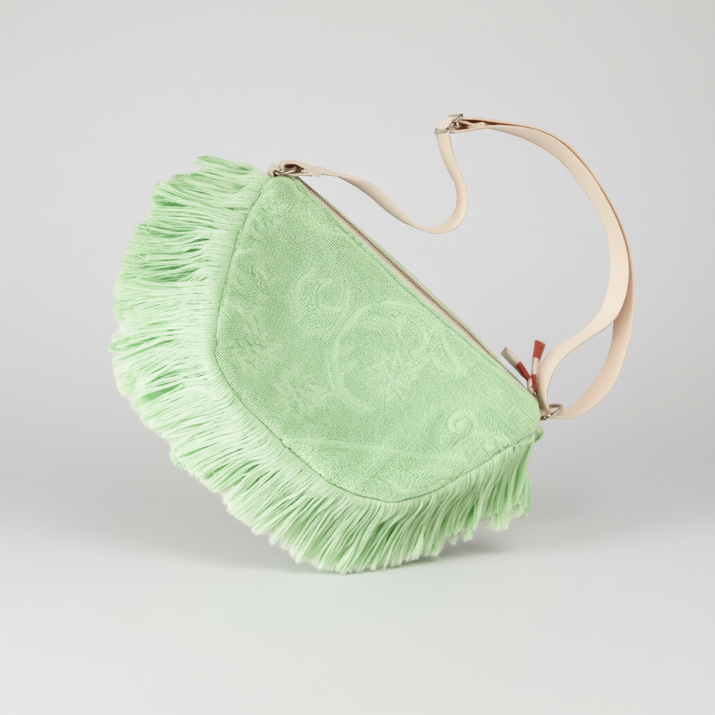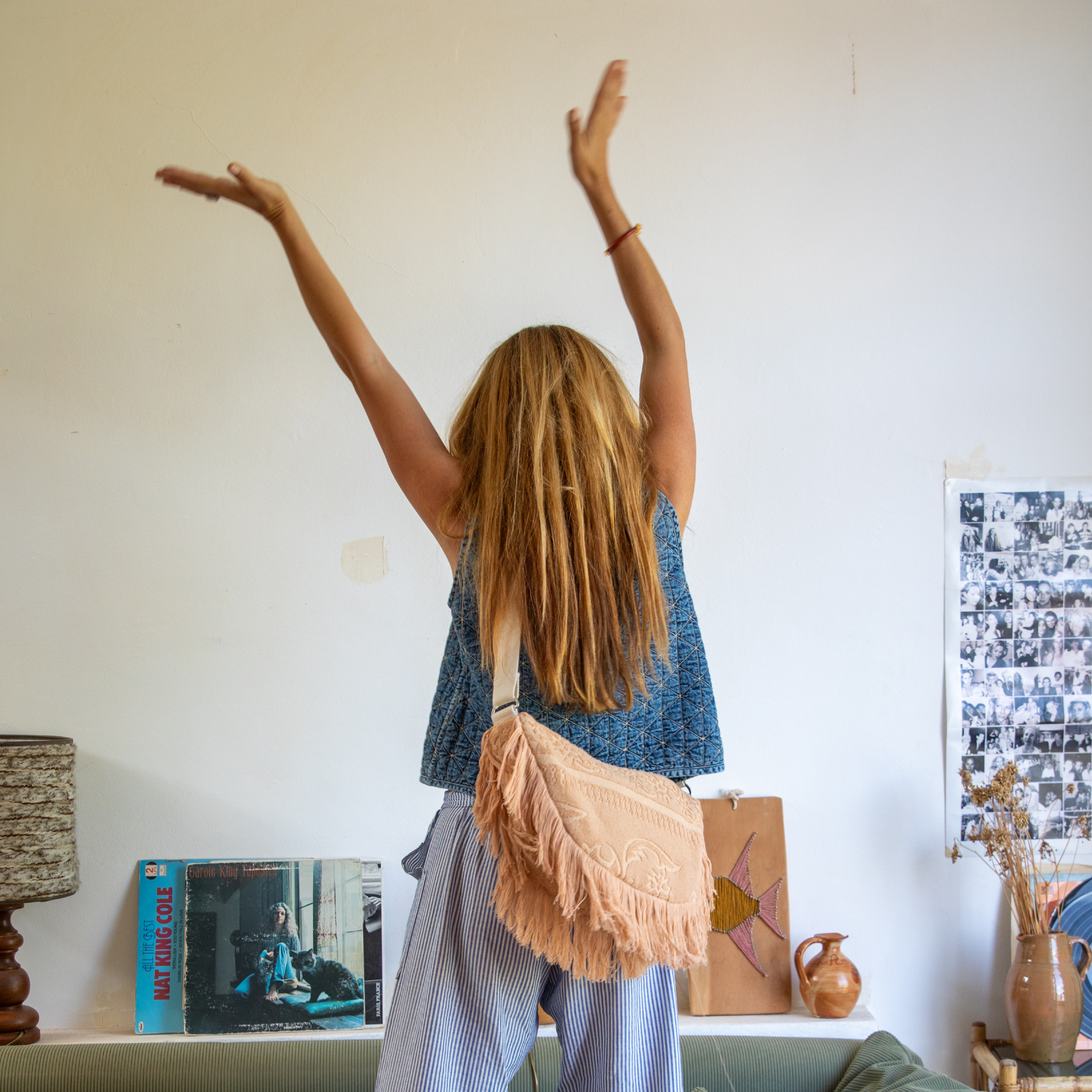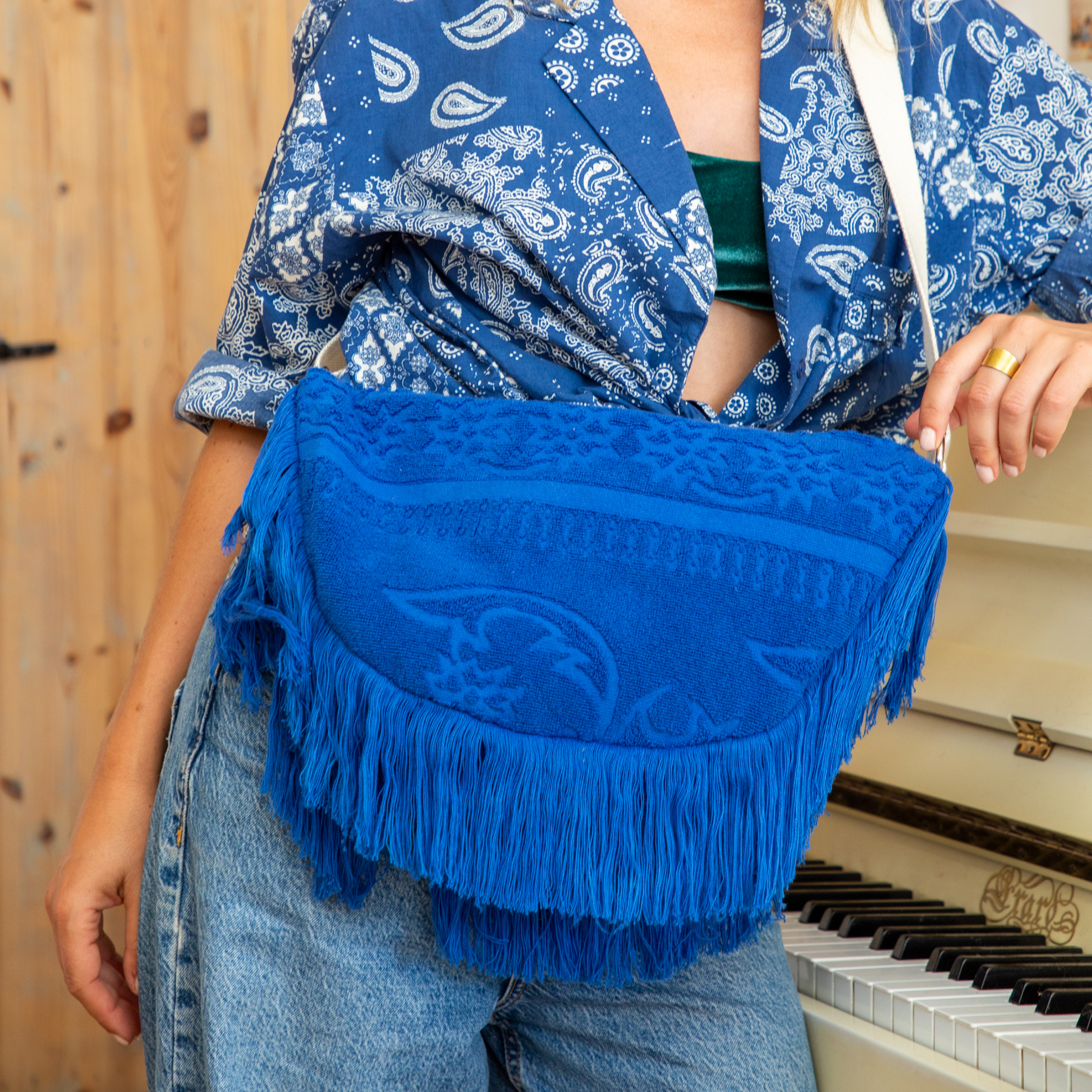 The half moon chic banana bag ANGLET with adjustable cotton strap, extra funky with fringes!