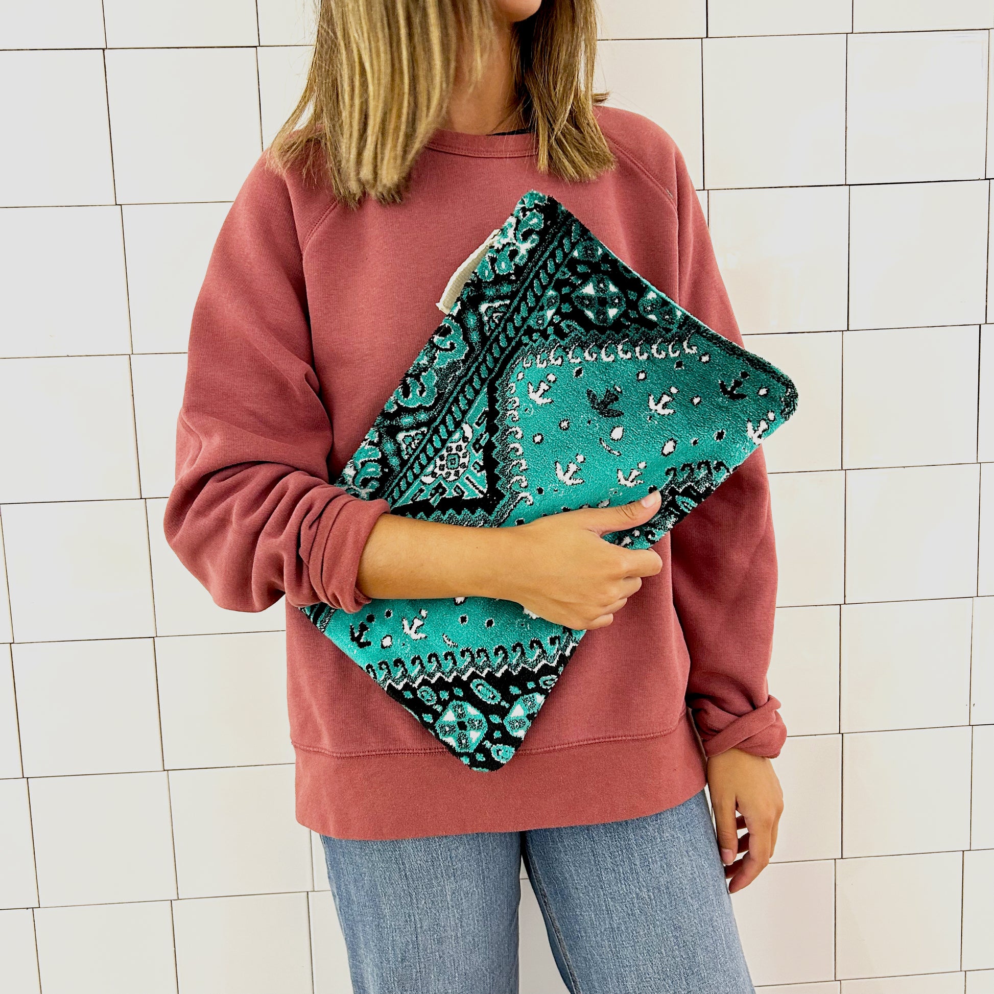WASHING: This item requires little upkeep. In case it gets stained, we recommend to remove it with a cloth and lukewarm water with a natural soap. Leave it to dry flat, in the open air. TIPS FOR LOOSE THREADS IN THE TERRY: Loose threads may appear due to sharp objects - but no worries, they can be easily removed by using scissors. After, the fabric will look like new again!