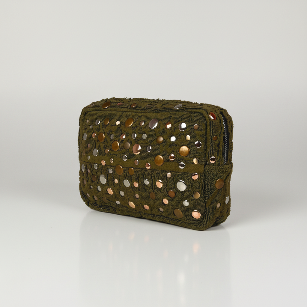 • CLUTCH CLOSURE: Nickel-free metal zip with zip pull in cotton with nickel-free studs