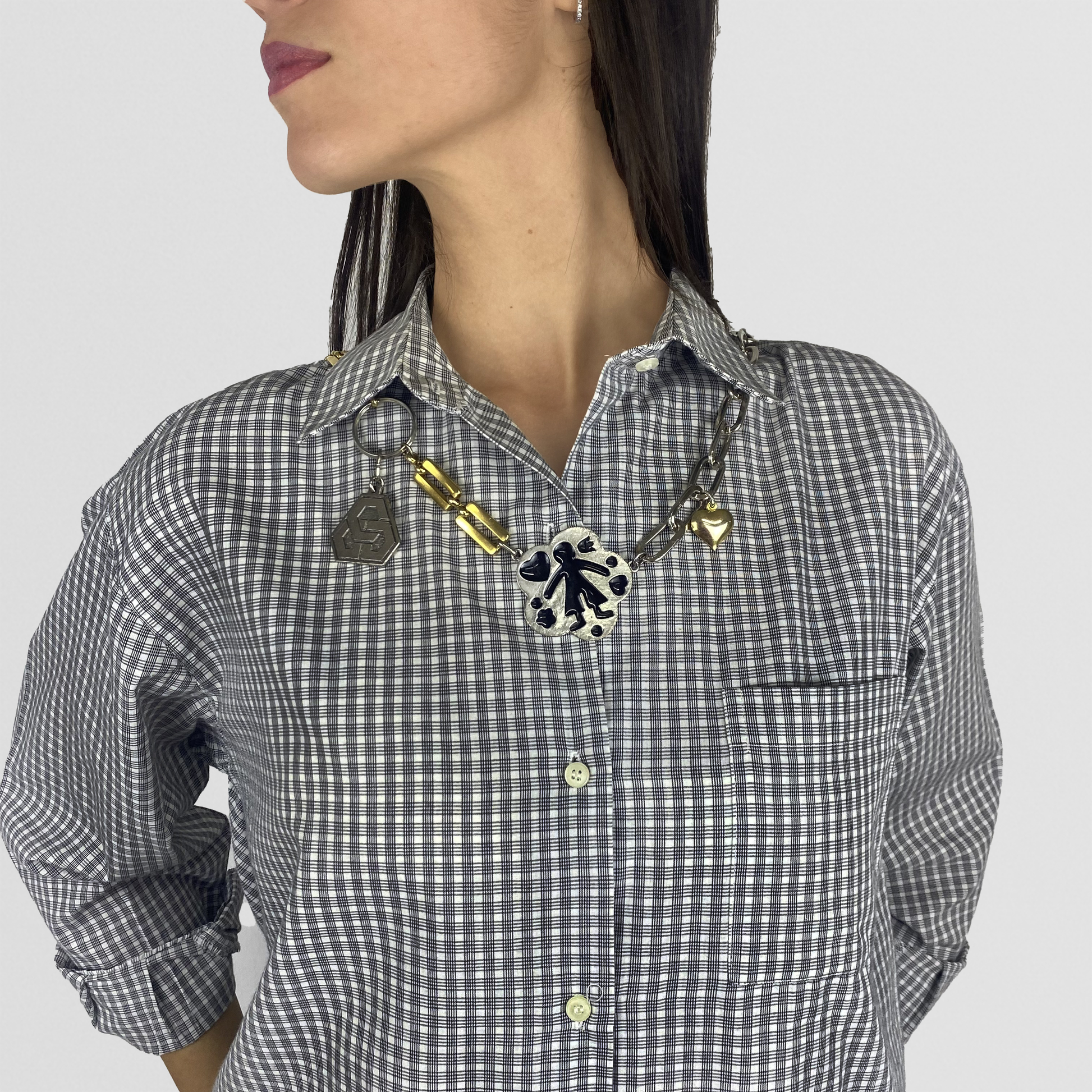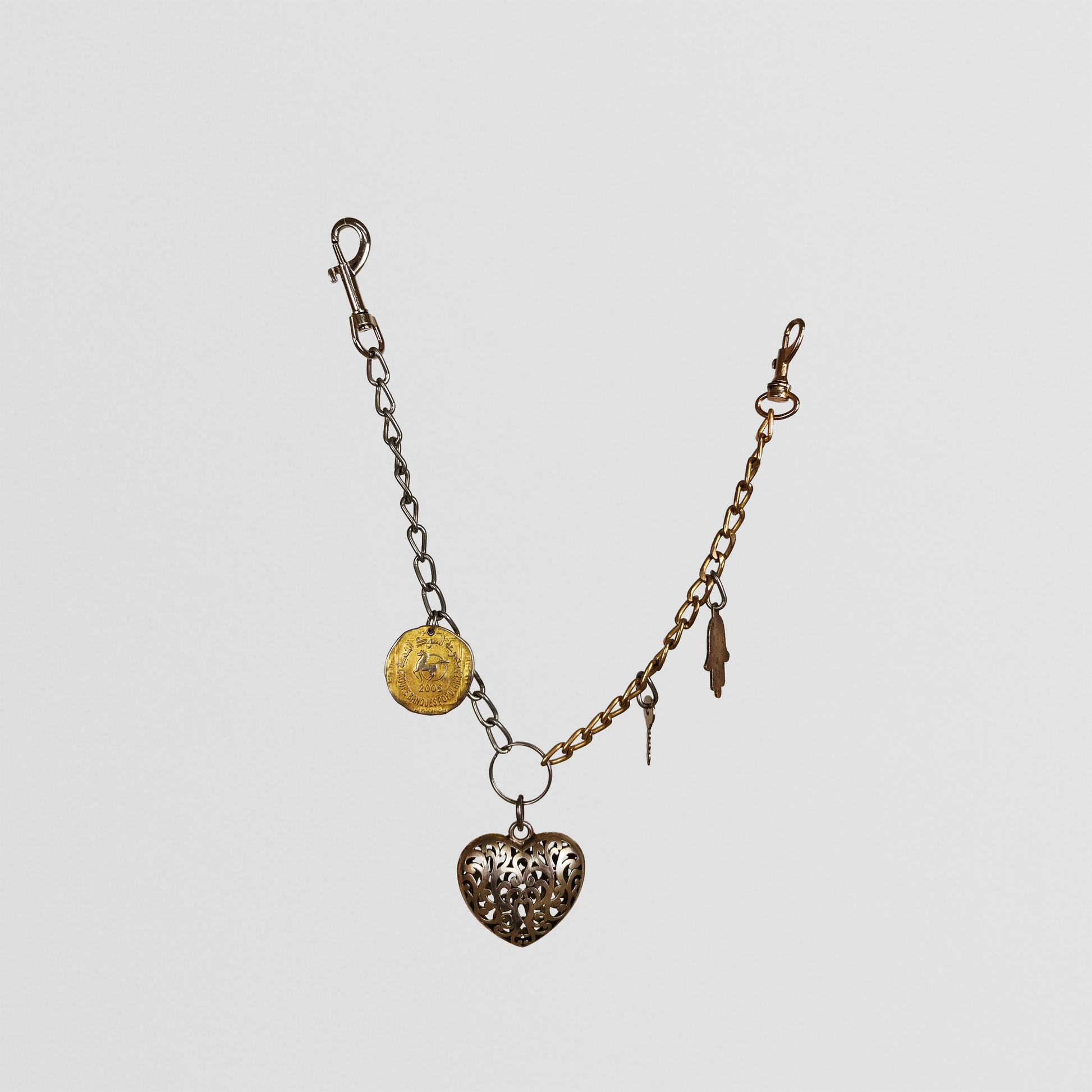 Lalla invited Rose, the creative soul and founder of Something's Cooking - a creative laboratory that focuses on up-cycling fabrics, old clothes or all kind of object, for a residency in Marrakech. She sourced unique metal charms and vintage items on local markets with she then turned them into eccentric and unmatched necklaces/accessories.